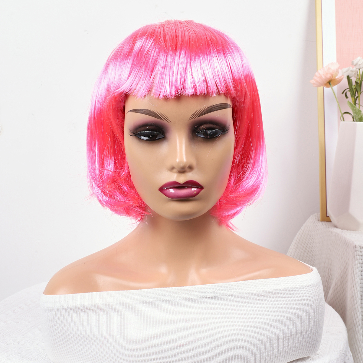 European and American festival wig pink micro-curly Bob wig with bangs daily cosplay chemical fiber wig