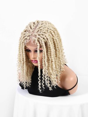 w0003Wholesale chemical fiber wigsYellow brown white lace long curly wig