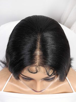 B000127 Black Lace Front Wig Body Wave Synthetic Wigs for Women, Jet Black Water Wave Wig, Middle Part T Part HD Lace, Wigs for