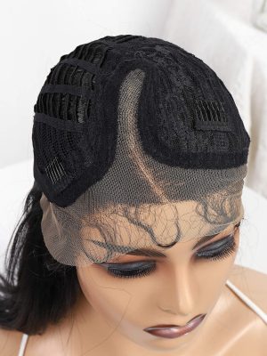 B000128 Black Lace Front Wig Body Wave Synthetic Wigs for Women, Jet Black Water Wave Wig, Middle Part T Part HD Lace, Wigs for quantity