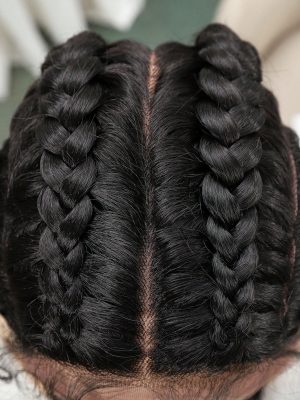 B005 Hand woven synthetic lace front corner woven wig, earthy yellow double Dutch woven lightweight Swiss soft lace front wigs