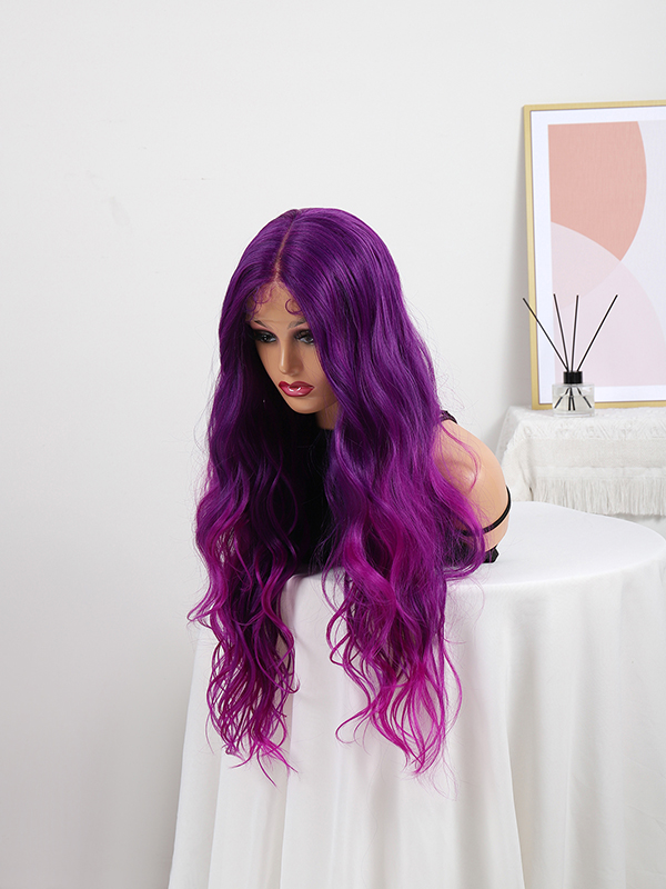 w0022Purple lace long curly wig KLP-LYMX ELECTRICPURPLE