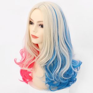 Wig female Big Wave Suicide Squad Clown cos Harley Quinn middle part long curly hair Halloween show party