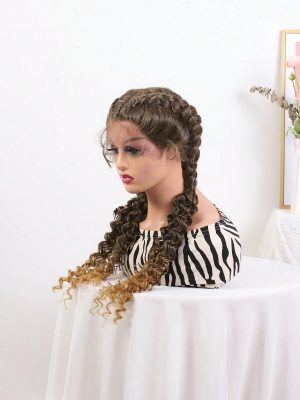 B024 27.5″ Braided Wigs with Baby Hair Synthetic Lace Front Braided Wigs with Curls Ends
