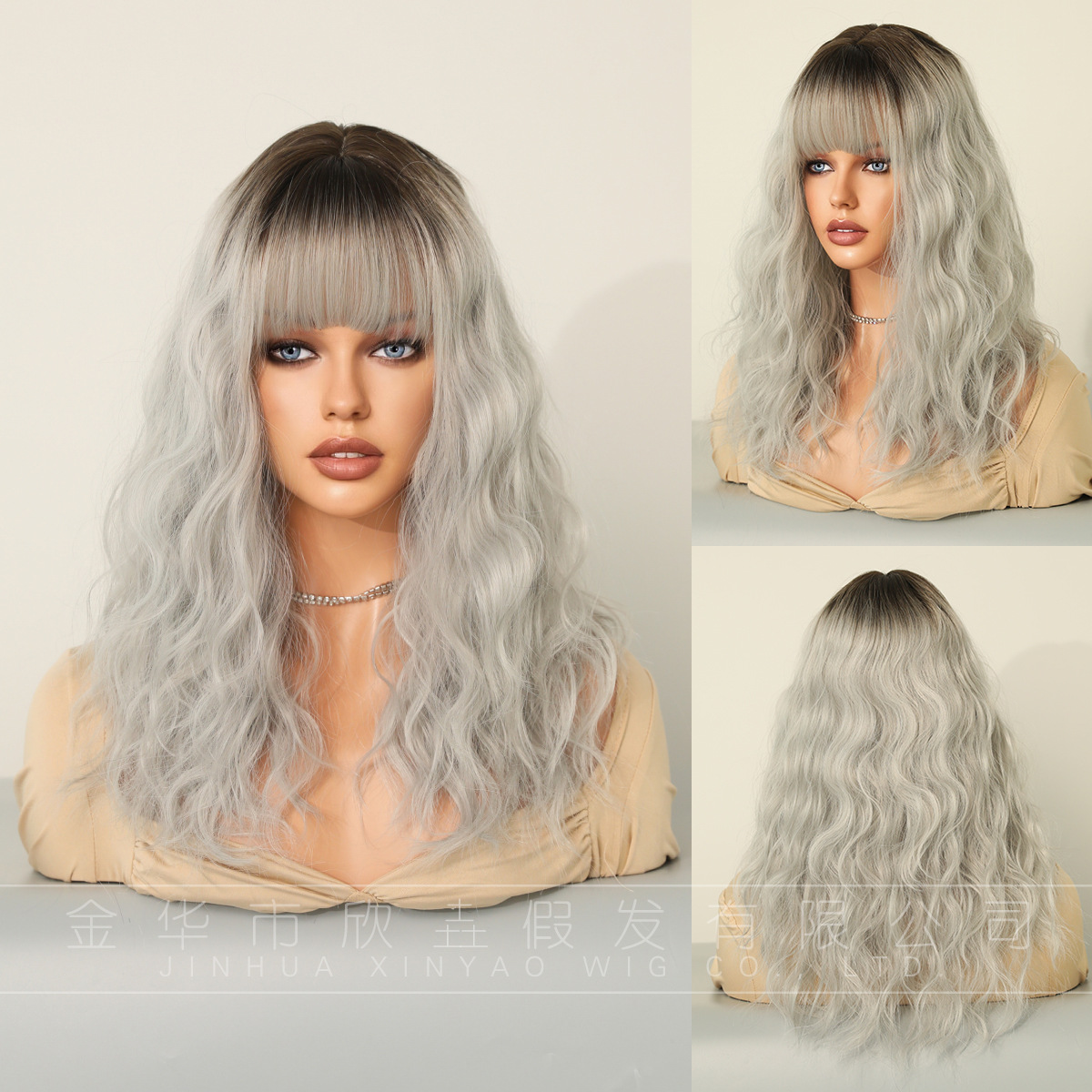 Home / costume wigs / C000105 Grey and white gradient curly hair lady’s wig