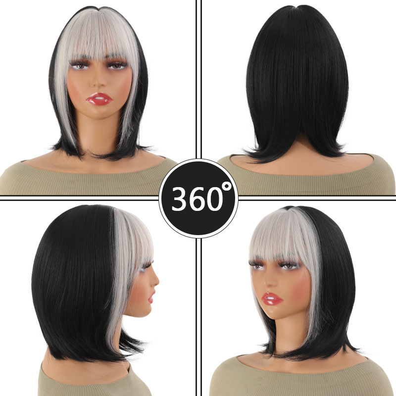 C000125 Black and gray highlighted Bob synthetic fiber wig