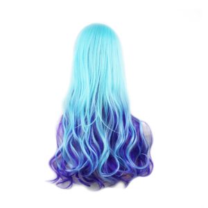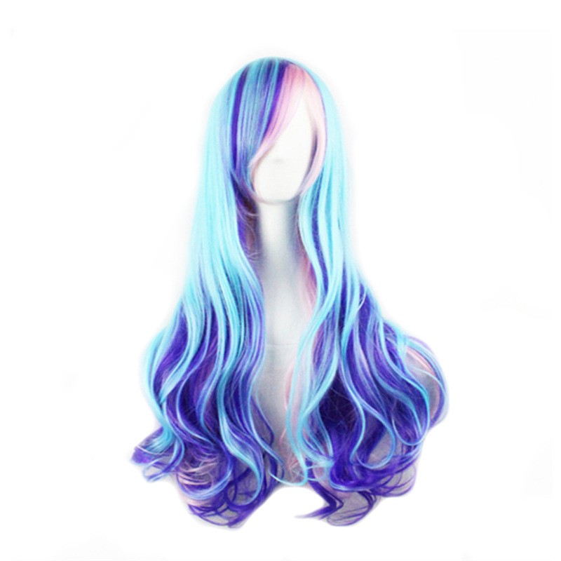 / Harajuku daily gradient European and American wig long curly hair color blue mixed pink COS wig head set Halloween play