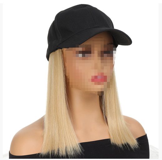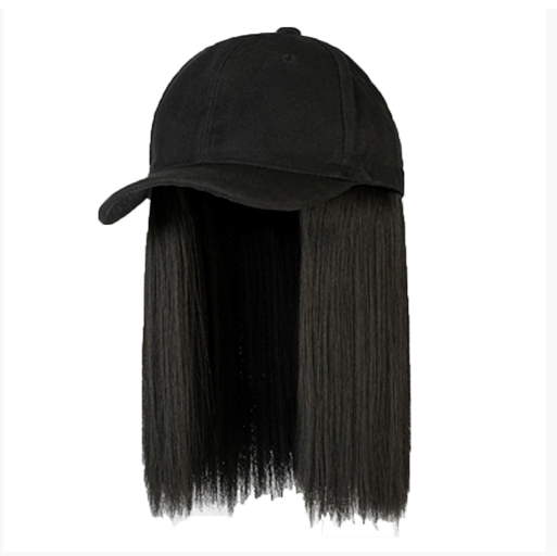 HT0018 Black duck tongue cap wig in Europe and the United States foreign trade hot sale baseball cap in long straight hair wig
