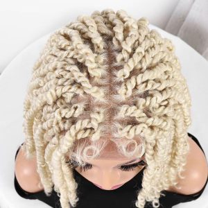 B002 Hand woven synthetic lace front woven wig, gold with double-layer Dutch woven lightweight Swiss soft lace front wig